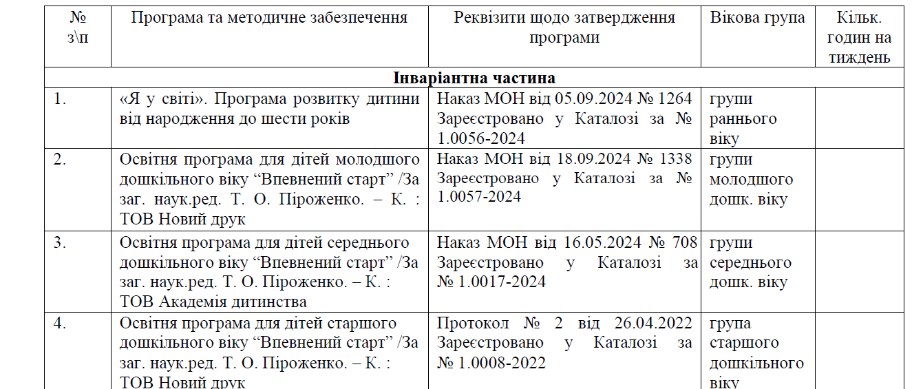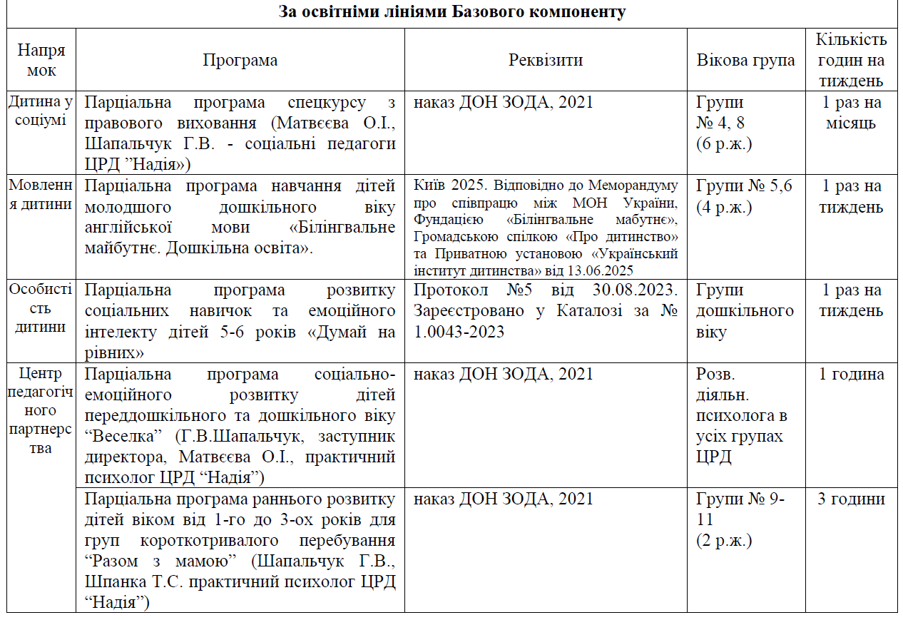 Варіативна частина Базового компоненту забезпечується авторськими парціальними програмами.